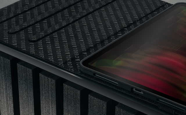 Nuestro estuche también ha sido diseñado específicamente para su uso con el Apple Pencil. El lateral del marco incorpora una ranura para facilitar la carga del Apple Pencil Pro mientras el iPad permanece en el estuche.